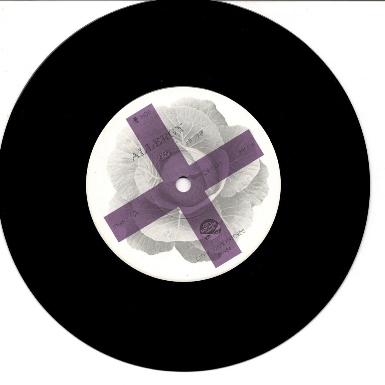 84年リリース、日本のニューウェイヴ/ポストパンク・バンド、アレルギーのシングルです。雑誌「DOLL」編集長であった森脇美貴夫が設立したレーベルである「CITY ROCKER」からのリリースで、アレルギーのシングルとしては本盤が唯一作です。Aは代表曲で、後にリリースされた数枚のライヴ・アルバムすべてに収録されており、2014年の再結成でリリースされたフル・アルバムにもAとB1が再演され収録されています。ノイジーなギターと饒舌なベースに甲高い男性ヴォーカルと、ポストパンクのお手本のようなサウンドですが、古臭く聴こえないのはやはり曲が良くて演奏にメリハリがあるからでしょう。ポストパンクってどういうの?の質問に対する(日本の場合の)模範解答です。ジャケット・デザインも秀逸です。