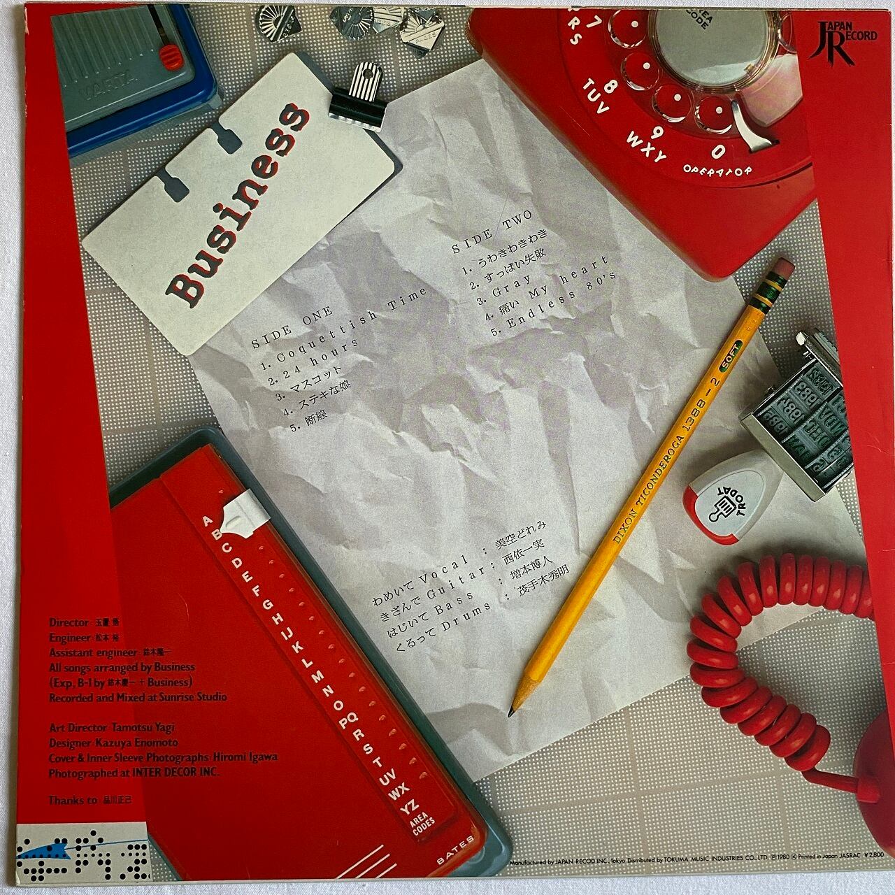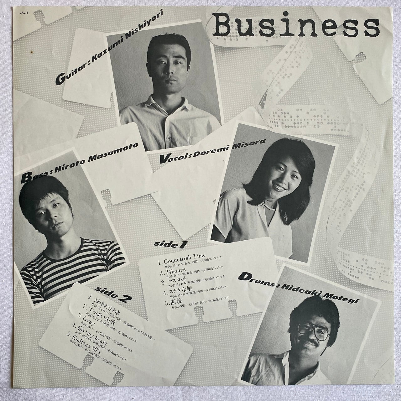 80年リリース、東京キッドブラザーズで女優をやっていた美空どれみをヴォーカルに擁する4人組バンド、ビジネスのファースト・アルバムです。80年代初期のニューウェイヴなギター・バンドのサウンドで、リズムがスカやレゲエだったりするのが他のバンドと一線を画していました。ジャケ写がとてもニューウェイヴなバンドに見えないところも魅力的。後に矢野顕子やP-MODELをリリースするジャパン・レコードの第1弾アーティストの第1弾アルバムとして注目を集め、シングルのB1は(それなりに)ヒットしました。作詞は美空とギターの西依一実が書き、西依がすべての作曲を担っているので、実質的に西依がリーダーシップを取るバンドと言えますが、バンドのキャラクターは何と言っても美空のヴォーカルです。どんなに最先端なニューウェイヴ・サウンドがバックで流れていても、彼女のヴォーカルが乗れば歌謡曲テイストが一気に高まります。後にヒカシューの巻上公一とコラボ作を制作する美空ですが、ホーミーも駆使するヴォイス・パフォーマーの巻上と、唯一無二な女性ハスキー・ヴォイスの美空が邂逅するのは必然だったでしょう。と、ここまで書いてきましたが、実は2022年暮にお亡くなりに。残念です。