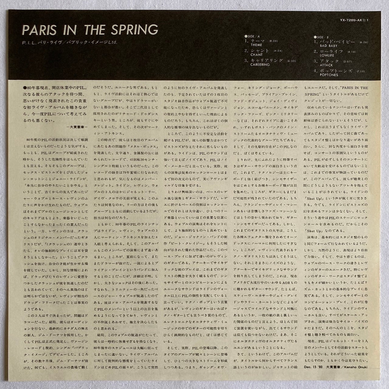 【LP】パブリック・イメージ・リミテッド – P.I.L. パリ・ライヴ