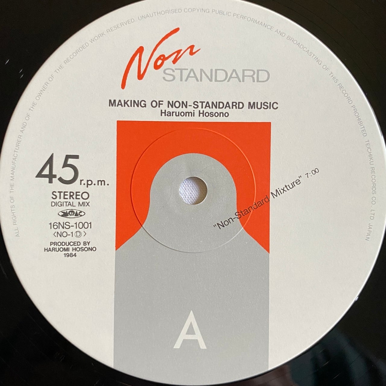 84年リリース、細野晴臣の12インチ・シングルです。YMO散開後、細野晴臣はテイチクに移籍し「Non-Standard」と「Monad」というふたつのレーベルを立ちあげることになりましたが、その第1弾というかこけら落としとしてリリースされたものが本作です。A面にはメイキング・オブ・ノンスタンダードと銘打って、デジタルなビートのヒップホップなシンセポップを収録。B面にはメイキング・オブ・モナド・ミュージックとして、現代音楽的な作品を収録しています。A面は後にリリースされるフルアルバムの「S・F・X」へ、B面はCM提供曲などを収録した「コインシデンタル・ミュージック」へと繋がっていきます。なお、初回限定5万枚に付属していた176ページもある本「グロビュール」が本盤には良い状態で残っています。