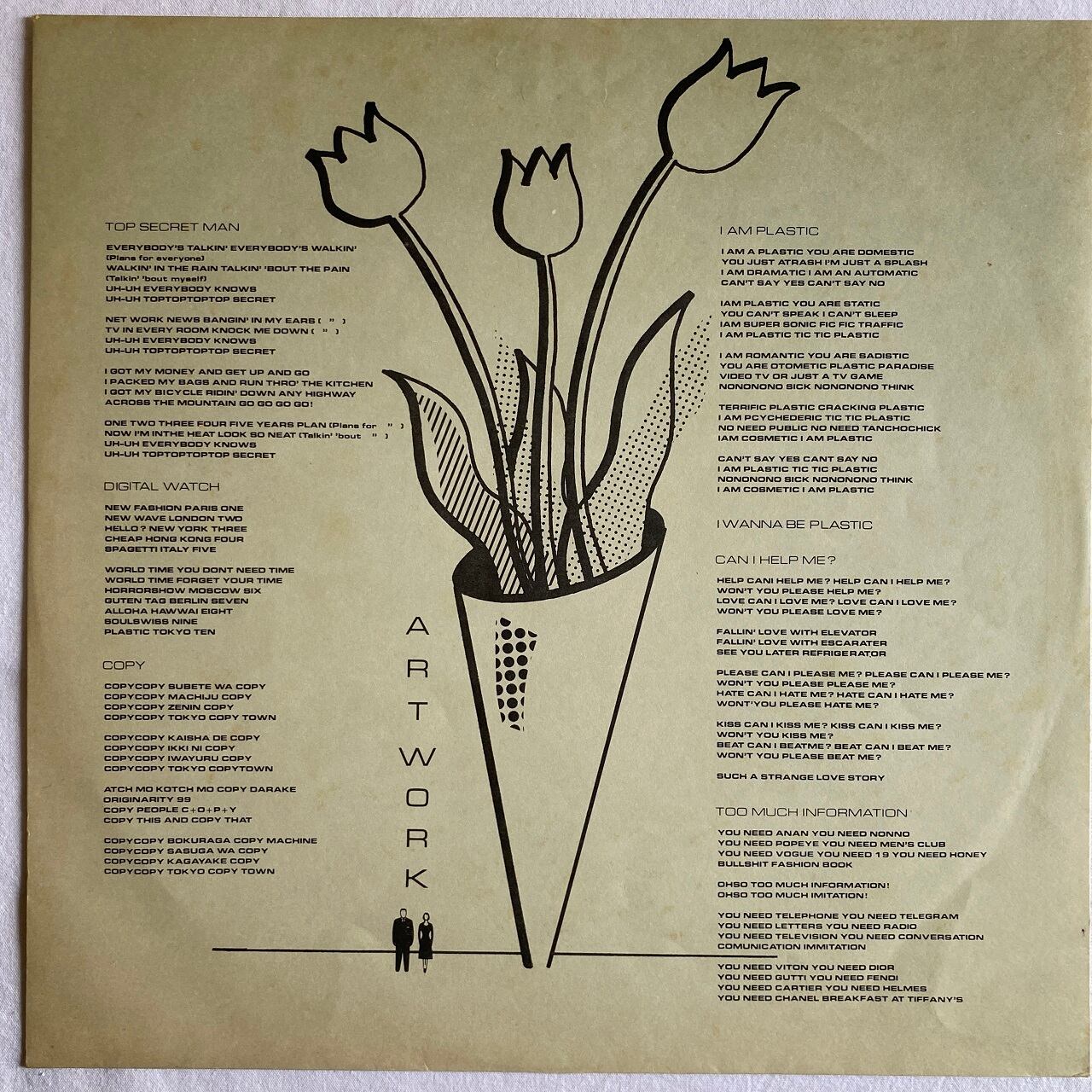 80年リリース、ニッチでポップなニューウェイヴ・バンド、プラスチックスのファースト・アルバムです。シングルでは、ポコポコちゃかちゃかしたチープなサウンドを展開しているプラスチックスですが、アルバム制作だからといって音がゴージャスになるなんてことはありません。後に名プロデューサーになる佐久間正英がいても関係なし、というか意図してチープでキッチュなサウンドにしたのでしょう。なんせ名前がプラスティックスではなくプラスチックスだし。ただ、音数と音色が少ないので、どれも同じような曲に聴こえてしまうのは玉に瑕。リズムボックスの音も、あまりにもローテクでアタックが弱いので催眠効果があるのか眠気を誘うことも。A8はビートルズ来日のときに制作された安井かずみ・井上忠夫作の「ウェルカム・ビートルズ」のプラスチックス・ヴァージョンです。