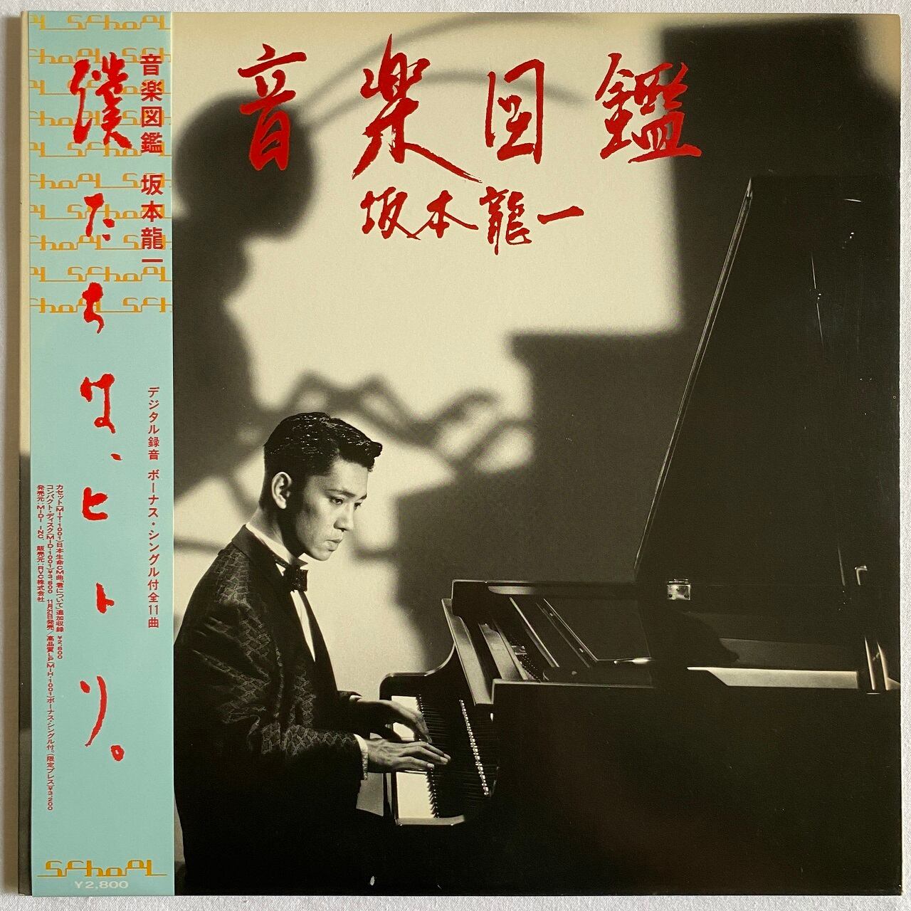 84年リリース、坂本龍一のソロ・アルバムです。内容は、タイトル通り図鑑のように色々な音楽スタイルを散りばめたものになっており、フュージョン、ジャズ、現代音楽に環境音楽など、とにかくヴァラエティに富んだアルバムになっています。ただしテクノポップはおろかYMOを連想するような曲はどこにもありません。ゲスト・ミュージシャンは、細野晴臣と高橋幸宏の参加は当然として、大村憲司、山下達郎、山木秀夫、清水靖晃、近藤等則、ヤン富田らが参加。海外からはデヴィッド・ヴァン・ティーゲム、ペンギン・カフェ・オーケストラのサイモン・ジェフス、現代アートのナム・ジュン・パイクらが参加しています。これだけ名うてのミュージシャンやアーティストが参加すれば、坂本のエゴだけでは楽曲は成り立ちません。それが本作のサウンドの多彩さを作り出したと言えましょう。坂本龍一の最高作かどうかはわかりませんが、比較的聴きやすいので、彼の作品を初めて聴くとしたら本作を躊躇なくお勧めします。本盤はLPプラス12インチ・シングルの初回盤ではなく、LPプラス7インチ・シングルの通常盤ですが、帯が付いているので、今となってはこちらのほうが貴重です。