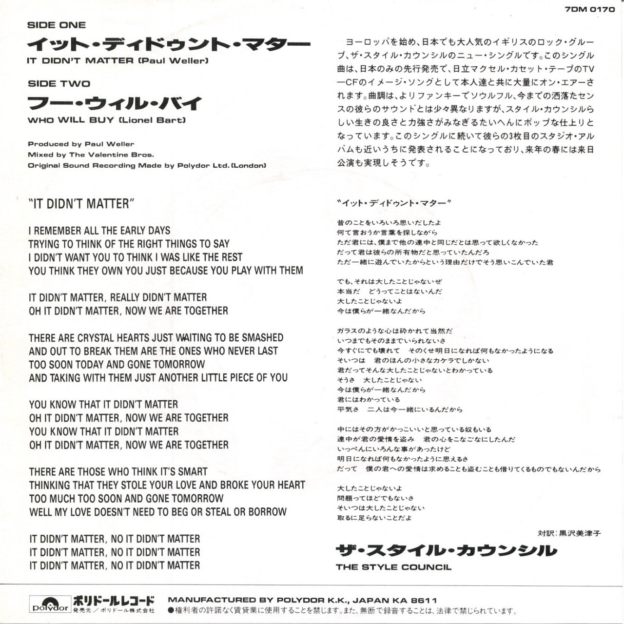 【7EP】ザ・スタイル・カウンシル – イット・ディドゥント・マター