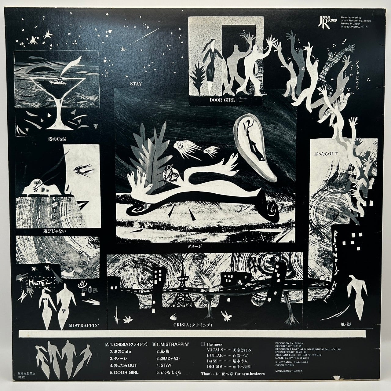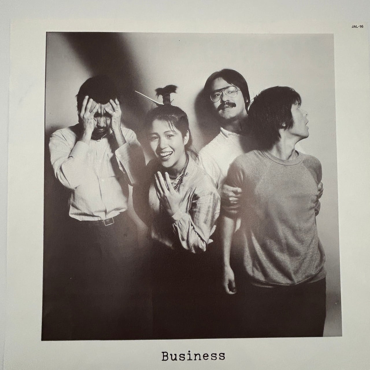 80年リリース、ダディ竹千代&東京おとぼけCATSでヴォーカルを務めた美空どれみを擁する4人組バンド、ビジネスのセカンド・アルバムです。「うわきわきわき」のヒットでお茶の間にも名前が知れ渡ったビジネスの2年ぶりの新作は、前作よりもさらにレゲエとスカのリズムに傾倒した曲が満載で、8ビートの曲がほとんどありません。美空のヴォイスもややハスキーさが強まっている感じ。そして曲はどんどん重く、マイナー調になっていて、なかなかにとっつきにくい感があります。A2がシングル・カットされましたが、タイトルとイメージとは違う70年代歌謡曲のような歌詞が、ゆったりとしつつつも、手数の多いレゲエのビートに乗って歌われます。一歩間違えればヒットしたかもしれないメロディの良さや、良い意味で癖のある曲ですが、リズムへのこだわりがポピュラリティを得る障害になってしまったかも(でもベースとドラムスのアンサンブルは絶品!)。本作のプロデューサーは日本にラフ・トレード・レーベルを紹介したことでも有名な芹沢のえですが、前作の鈴木慶一や、同じムーンライダーズの白井良明あたりのミュージシャンにプロデュースを任せれば、次の展開が見えたかもしれません。しかし解散して40年以上経ち、美空も亡くなっているので、それを期待したり妄想しても無意味ではありますが。