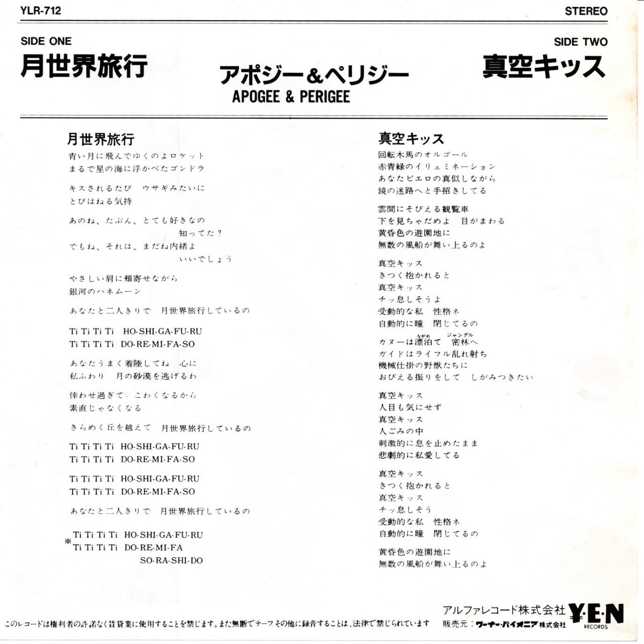 【7EP】アポジー & ペリジー(戸川純) – 月世界旅行