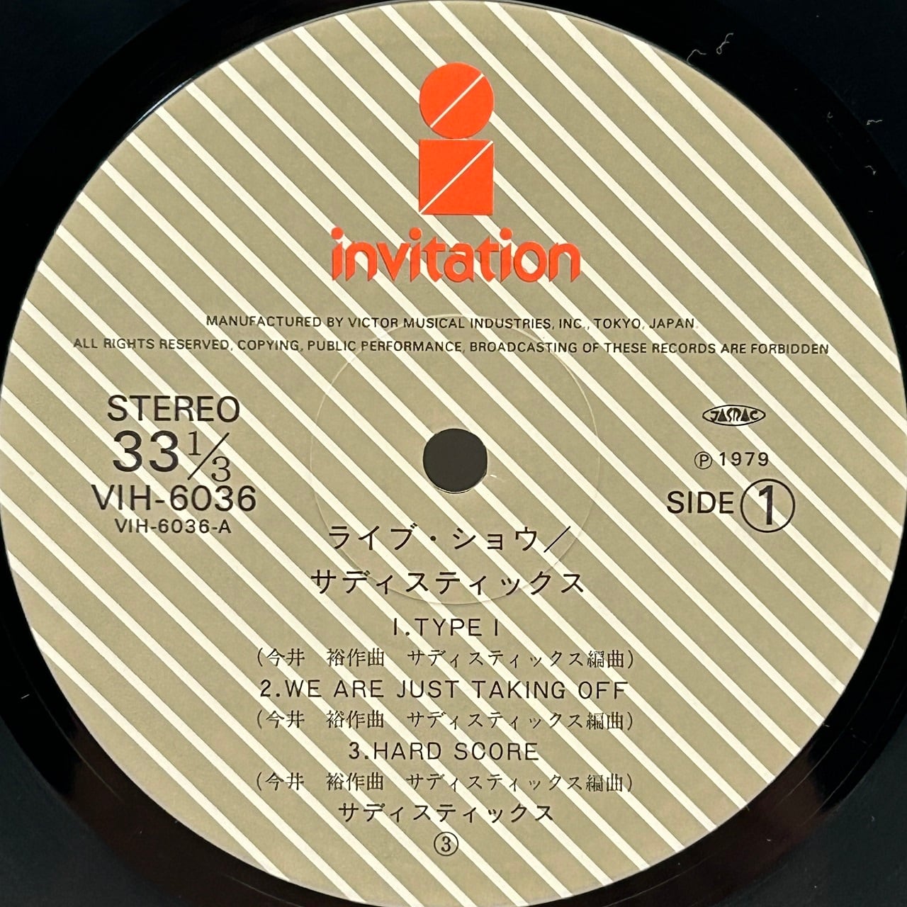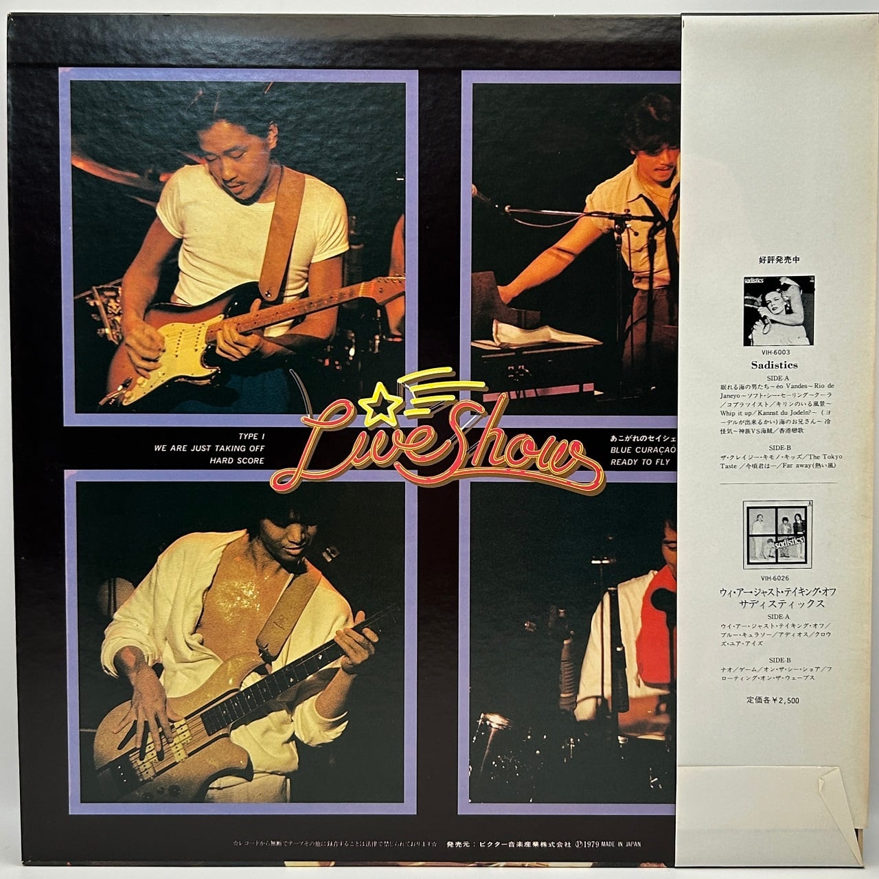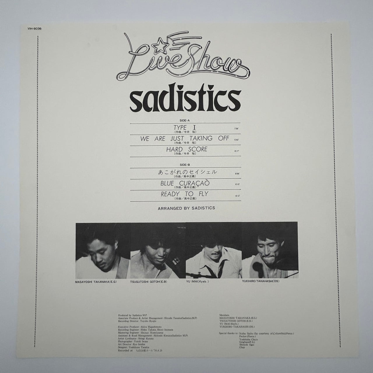 79年リリース、サディスティック・ミカ・バンドの解散後に加藤元夫妻以外のメンバーで結成されたサディスティックスのライヴ・アルバムです。78年8月29日に九段会館で行われたライヴを収録したもので、この時点のメンバーは高中正義、高橋幸宏、今井裕、後藤次利のほか、村上ポンタ秀一とペッカー、斎藤ノブらがゲスト参加しています。この日のライヴ以降、サディスティックスはライヴを行っていないので、事実上の解散ライヴということになります。A面はすべて今井裕の作、B面は高中の作で、メロディ楽器であるから当然とは言え高中のギターの存在感が大きく、サディスティックスは結局、高中ブレイクの土台を作ったバンドであったというひとつの事実をこのライヴ盤は表しています。