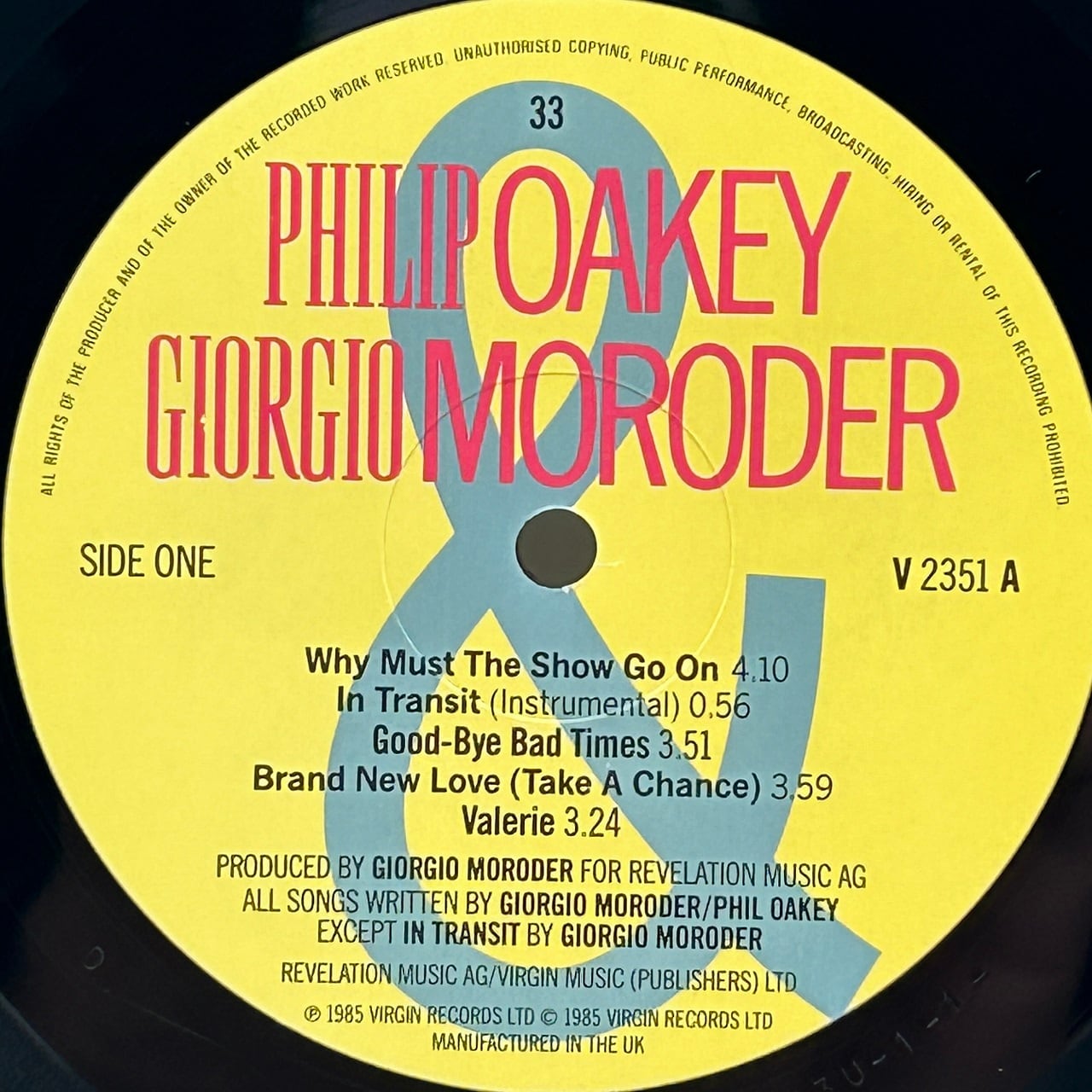 【UK盤・中古】Philip Oakey & Giorgio Moroder – Philip Oakey & Giorgio Moroder