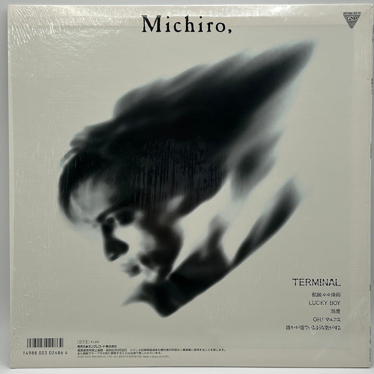 87年リリース、元ザ・スターリンの遠藤ミチロウのユニット「Michiro,Get the Help!」のフル・アルバムです。遠藤は85年からグロテスク・ニュー・ポップ (G.N.P.)のスローガンのもとにシングルやミニ・アルバム作品をリリースしてきましたが、本作がその最終作となります。コンセプトはこれまでを踏襲したもので新展開があるわけではなく、収入曲のうち3曲が過去作のリメイクとなっていたりと、G.N.P.の総まとめといった感のある作品です。A1は84年に遠藤が責任編集として刊行されたソノシート付マガジン「ING'O」の付録として一度発表されたもので、元々長い曲でしたが、さらに11分もの長尺になっています。そういえば本盤収録曲はA2を除いてどれもが長尺です。A3は「Trash」とライブ・アルバム「FOR NEVER」の収録曲のリメイク。B1はザ・スターリンの12インチ「Go Go スターリン」収録の「先天性労働者」の改作で、且つ「FOR NEVER」に「お母さんいい加減〜先天性労働者 」として収録されていた曲です。いずれの曲も新バンド「パラノイア・スター」による制作ということになっています。一方で、A2のみR&Bバンドであるヴォイス & リズムとの共演の際に制作されたもので、さすがにこれだけは音の質感が違います。この曲はシングルとしてリリースされましたが、本作からシングル・カットするなら確かにA2しかないでしょう。本アルバムのサウンドの全体的なトーンはとにかく絶望的にダークでサイケデリックで(そして長尺曲ばかりと)売れる感じが全くしません。もちろん、明るくポップであることが必要とは言いませんがG.N.P.を掲げた初期の作品に比べて、どうにも陰陰滅滅としています。本作でキング・レコードとの契約は終了し、遠藤は2年後にアルファで「ザ」のないスターリンで再出発することになります。