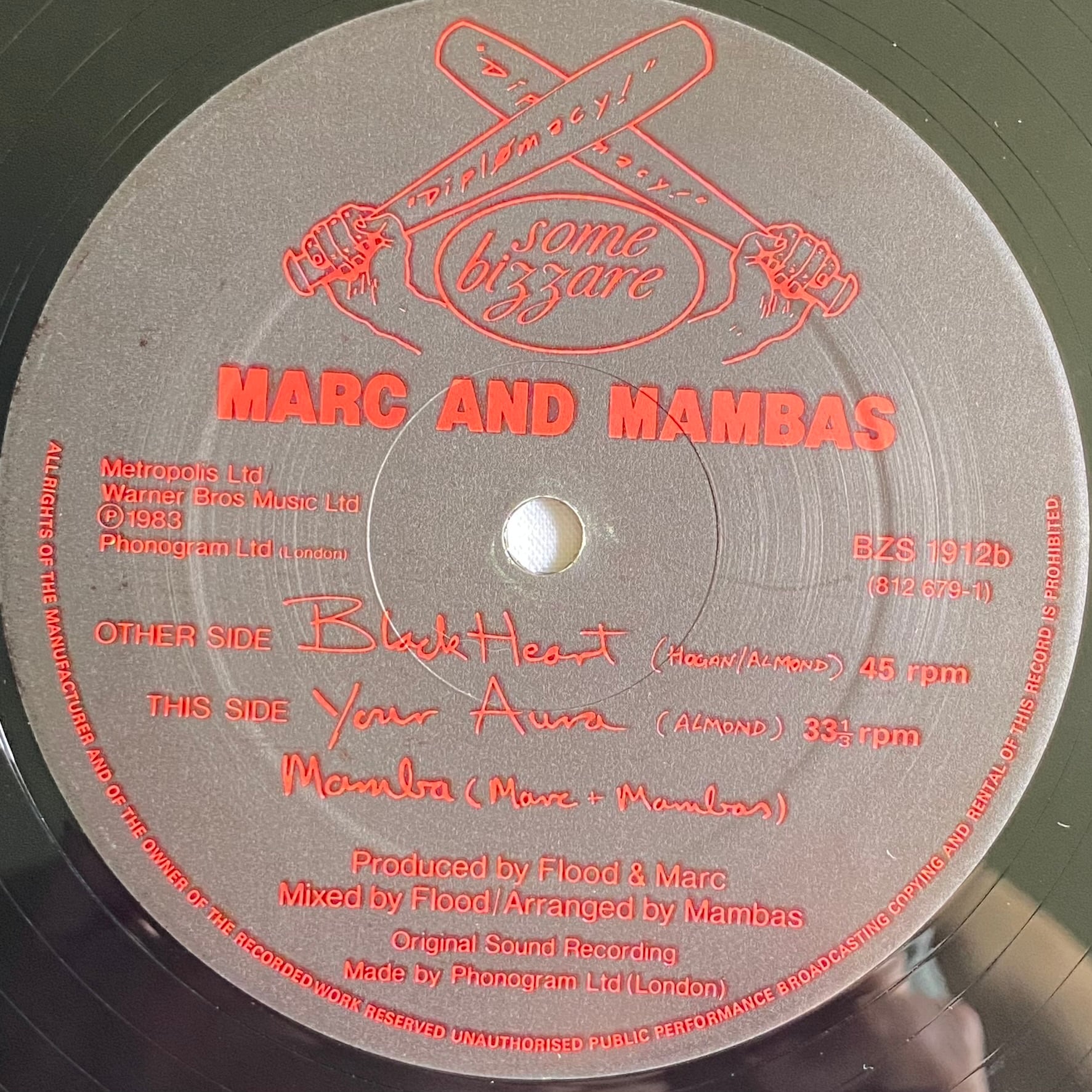 83年リリース、マーク・アーモンドのバンド、マーク・アンド・ザ・マンバスのセカンド・シングルです。セカンド・アルバム「Torment and Toreros」収録曲で、全英シングル・チャートの49位を記録しました。作詞作曲はマークと、マークの作品に長く関わっていくとこになるアニー・ホーガンによるもので、マンバスの特徴であるヴァイオリンなどのアコースティック楽器を多くフィーチャーした楽曲ですが、ビートを刻むのがドラムマシン(というかリズムボックス)なのでソフト・セル時代のダークなシンセ・ポップも思い出させます。B面ではギターとヴォーカルでザ・ザのマット・ジョンソンが参加しています。それにしてもヴァリタによるジャケ画が今回も素晴らしすぎ。狂ってる!