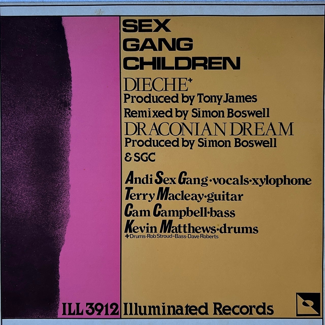 84年リリース、ロンドンで結成されたポジティヴパンク/ゴシックロック・バンド、セックス・ギャング・チルドレンの5枚目のシングルです。83年リリースのアルバム「Song and Legend」がUKインディー・チャートの1位獲得し、続いてリリースされたディスチャージらハードコア・パンクの作品のリリース元であるクレイ・レコーズからのシングル「Mauritia Mayer」とイルミネイテッド・レコーズからのシングル「Sebastiane」がどちらも高く評価され、UKポジティヴ・パンク界では確固たるプレゼンスを確立したこの時期のSGC。本作もおおむね評価は高く、UKインディー・チャートの15位を記録しました。Aメロというかワン・フレーズのメロディを執拗に繰り返すだけの楽曲で、狂気を感じさせるヴァイオリンが効果的に挿入されます。でも、とにかく印象的なのは終始奏でられるマリンバの音です。音色からユーモアさえ感じされるためポジティヴ・パンクではまず使用されない楽器ですが、それを大胆に使用できるところに、他のポジティヴ・パンク・バンドとの才能の差を感じさせます。SGCは解散を経て再結成され、現在も活動していますが、タイトル曲は今でもライヴ本編の最後やアンコールで必ず演奏される代表曲となっています。