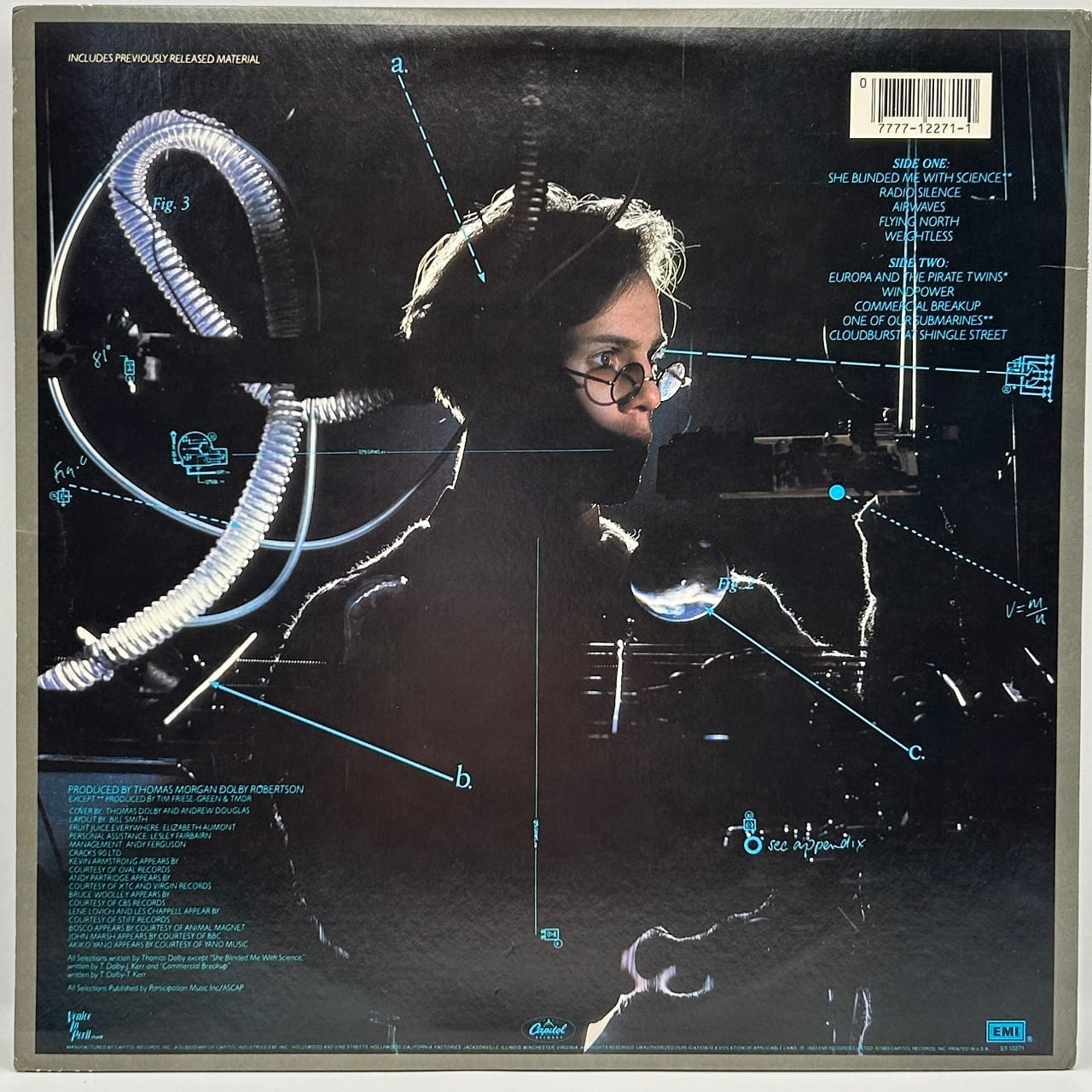 82年リリース、イギリスはロンドン出身のシンセ・アーティスト、トーマス・ドルビーのデビュー・アルバムです。ブルース・ウーリー&ザ・カメラ・クラブに所属しながら、トンプソン・ツインズ、リーナ・ラヴィッチなどへのゲスト参加し経験を積んできた彼は、ベルギーのクレプスキュールの名オムニバス・アルバム「From Brussels with Love」に収録されたA3の好評価を受けてから自身の作品の制作を本格化。フォリナーのアルバム「4」の制作とライヴ・ツアーへの参加による報酬で資金を得て本作を完成させました。本作には82年にリリースされた最初のヴァージョンを含め5つの収録曲違いがあり、本盤はアメリカでの2回目のリリース・ヴァージョンです。最初のイギリスでのオリジナル・ヴァージョンとの違いは、何と言ってもA1が収録されていることです。82年にリリースされ、83年にはビルボード・ホット100の5位まで上がる大ヒットとなった、80年代を代表するシンセポップの名曲ですが、その派手目でハイパーなサウンドが、結構静けさを感じさせるオリジナル・アルバムの収録曲の中ではちょっとした異物感を醸し出しています。キーボーディストが時間をかけてコツコツと作ったということで、宅録のイメージがありますが、意外にも参加したゲスト・ミュージシャンは多く、後にデヴィッド・ボウイやモリッシーの作品で重要な役割を果たすことになるケヴィン・アームストロングをはじめ、ミュート・レコードのダニエル・ミラー、XTCのアンディ・パートリッジ、所属バンドのリーダーのブルース・ウーリーなどが制作に加わっています。A2では矢野顕子も参加して、誰が聴いても彼女とわかるヴォーカルを披露しています。