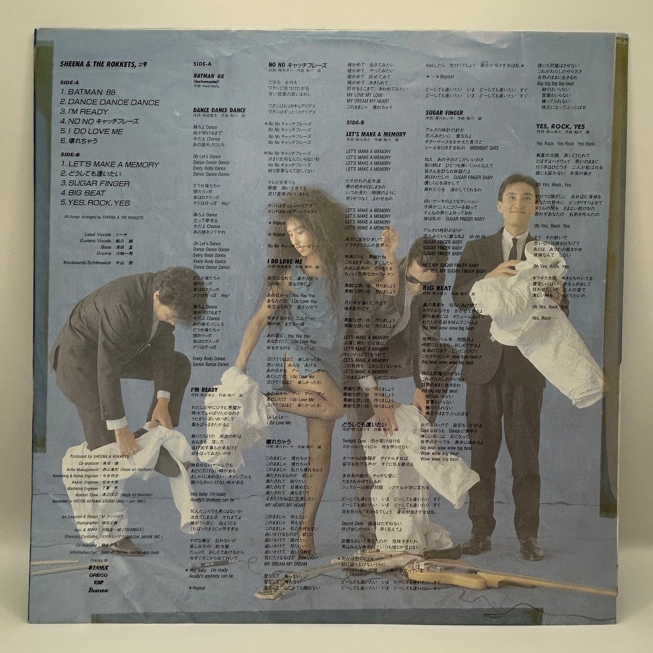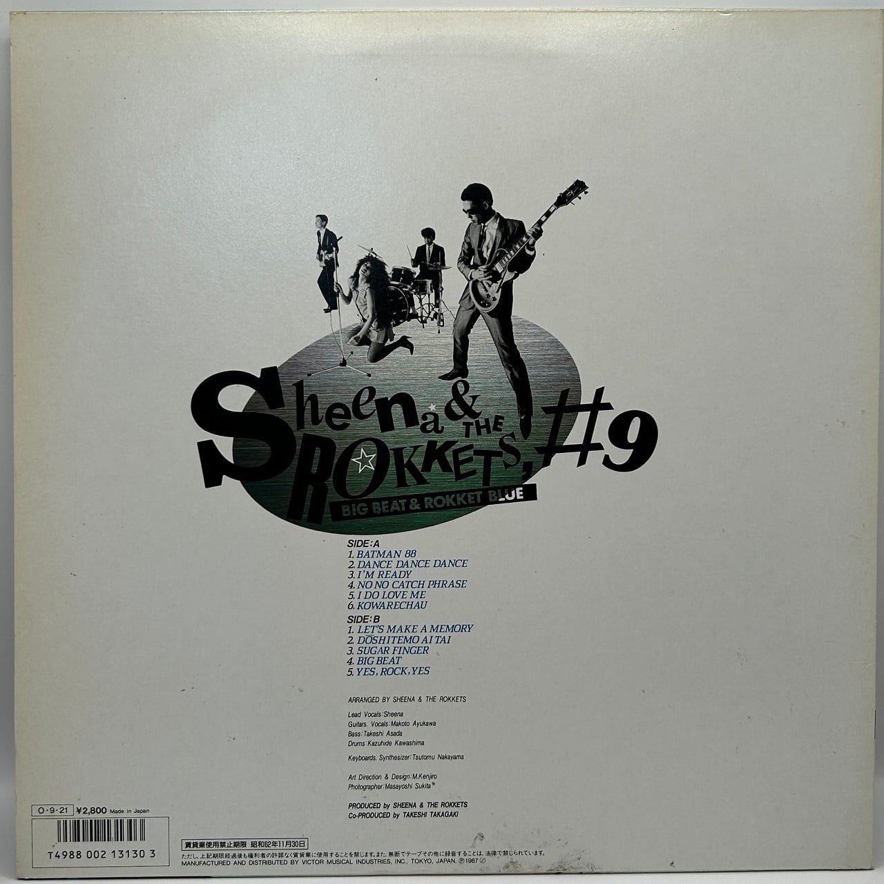 87年リリース、シーナ&ロケッツのスタジオ・アルバムです。アルファ・レコードからインビテーションに移ってからは4作目のアルバムで、オリジナル・アルバムとしては通算8作目ですが、タイトルはなぜか「#9」。これは86年リリース「CAPTAIN GUITAR AND BABY ROCK」をカウントしているからかもしれません。さて本作では、A1にバットマンのテーマを収録しており、セカンド・アルバム「真空パック」を想起させますが、だからといってニューウェイヴに回帰したサウンドになっているわけではなく、収録曲はどれもオーセンティックなロックンロールばかりです。そんな中で、B2だけはちょっと歌謡曲マナーな曲ですが、これは1986オメガトライブの「君は1000%」や菊池桃子の一連の作品の作詞を手掛けている有川正沙子作詞による楽曲で、アルバムに先駆けてシングルとしてリリースされました。この曲は、アン・ルイスのロックなヒット曲のいくつかを連想しますが、そのアン・ルイスのヒット曲の多くの作詞をしている湯川れい子はロッカバラードのB3を作詞しています。