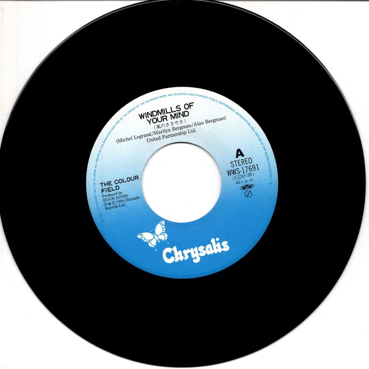 87年リリース、スペシャルズとファン・ボーイ・スリーのフロントマンだったテリー・ホールが結成したバンド、カラー・フィールドのシングルです。曲は、68年公開の映画「華麗なる賭け」の挿入歌であるミッシェル・ルグラン作の有名曲で、ダスティ・スプリングフィールドによるカヴァーが有名で、日本でも竹内まりやがカヴァーしています。マイナー調の切ないメロディの曲で、カラー・フィールドの持ち味であるアコースティックな優しいサウンド(ギターの弾き語りとピアノとちょっとキーボード)でカヴァーすれば、それは悪くなるはずありません。そんな本盤は、実は日本のみでリリースされたシングルで、パイオニアのシステム・コンポ(ステレオ・セットですな)のCMソングとしてテレビで流れました。日本の一企業の一商品のために(けっこう名の知れた)あるアーティストにカヴァーを作らせてしまうという、バブル黎明期の創造力も資金力もあった日本はすごい、というか恐ろしい。なので、日本ではそれなりに耳なじみな曲ですが、海外ではシングル・リリースどころか、オリジナル・アルバムにも収録されてなく、オリジナル・アルバムのCD化や、ベスト・アルバムの編纂により、やっと世界中にお披露目となったという幻の曲なのです。カラー・フィールドは、それほどヒットもなく成功とは縁のないバンドでしたが、本作を世界中で、いやせめてイギリスでシングル・リリースしていれば、もう少し売れていたのではと考えてしまいます。B面には84年リリースのセカンド・シングル(全英70位)を収録。そう言えば、細かいことですが、本作リリース時のカラー・フィールドはテリー・ホールとトビー・ライオンズの二人組になっていたので、三人写っているジャケット写真はフェイクです。