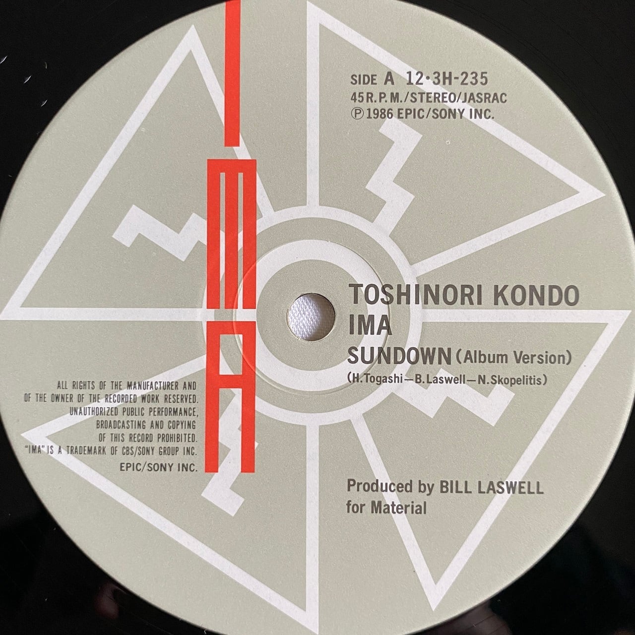 86年リリース、国際的に知られたトランぺッターの近藤等則率いる近藤等則IMAのファースト・シングルです。AB面曲ともサード・アルバム「コントン」の収録曲で、プロデュースはマテリアルのビル・ラズウェル。タイトル曲はそのビル・ラズウェルとキーボードの富樫春生とギリシャ系アメリカ人ギタリスト/プログラマーのニッキー・スコペリティスの共作で、近藤は作曲にタッチしていないという珍しい曲です。重たいビートの上で、近藤のフリーキーなトランペットが嘶くデジタル・ファンク・ジャズで、今聴いても刺激的なサウンドですが、12インチでシングル・カットをするなら、リミックスをしてアルバムと差別化してほしかった。